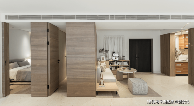 这个户型很罕见地在入户空间,预留了休息会客区域,这里作为舒适的多功能区域与室内室外都能衔接呼应。