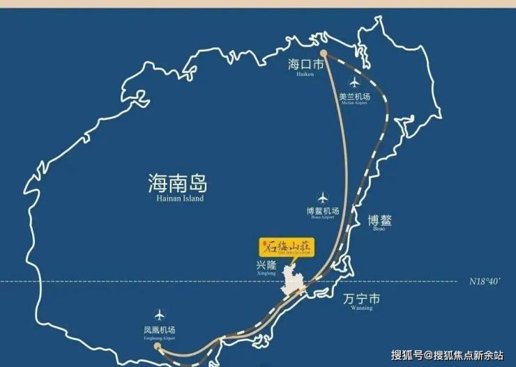 3大机场:海口美兰机场(约140公里) 、三亚凤凰机场(约98公里) ,琼海博鳌机场(约54公里)