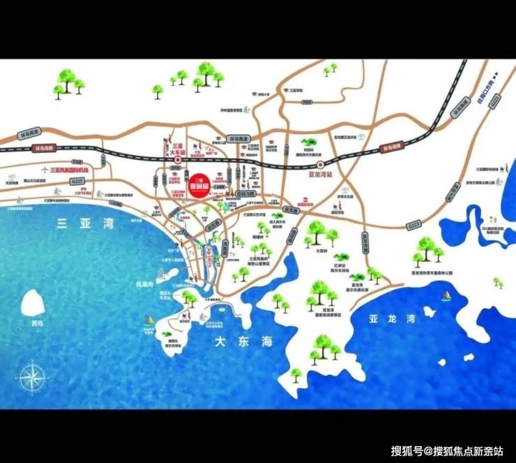 【交通配套】:地段绝佳,城市核心区。凤凰路的中段,项目与三亚湾直线距离4公里。5分钟可达三亚高铁站、10分钟可达三亚绕城高速、15分钟可达三亚凤凰国际机场。新修建的轻轨电车紧邻项目,步行3分钟即可到达凤凰路站乘坐。