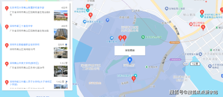 项目北侧为南海大道南延路(建设中),靠近赤湾山、文天祥纪念公园、华育小学;西侧靠近左炮台公园、赤湾码;东侧为幼儿园和九年一贯制学校(建设中),还有规划中的问题中心;项目南侧为厂房及物流公司,靠近蛇口码头。