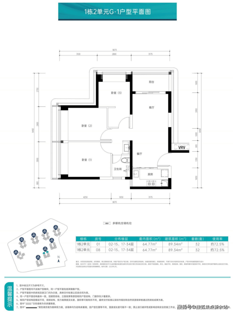 两房户型1065套(包含64套无障碍住房),建筑面积约70平方米;