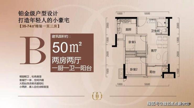 🔺A户型:建筑面积约35㎡,精致一房,百变阳台创意空间