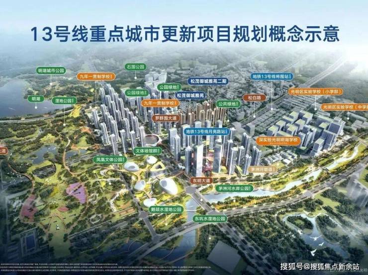 <休闲>:约58万㎡明湖城市公园举步即达,更新单元内约60万㎡主题公园(在建)、约6.8km茅洲河生态长廊等绿意荟萃。