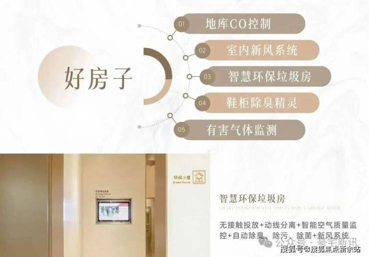 新风系统、智慧垃圾房等配置,从户内到小区,全方位净化监测+清新除菌+绿色投放,无忧呼吸。