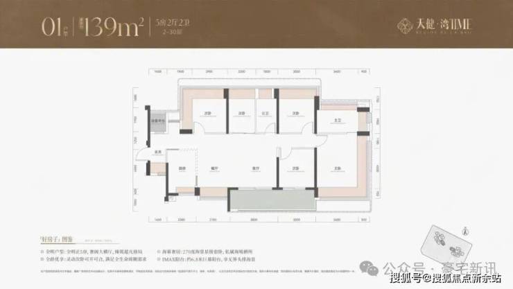约80%南向全明大面宽户型,全屋环绕式采光面,盛满一室阳光;约6.3-6.8m阔景大阳台,晨间瑜伽、午茶瞰海、暮色小酌,海幕星空自成生活背景;海景星级套卧,270°环幕自在观景,享受头排海景盛宴。