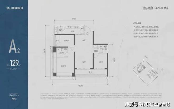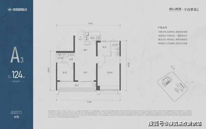 A3也是两条腿,分别是1-1栋04/05,主朝向是东南向,双龙抱珠格局。客厅拥有超大观景阳台,缺点是公卫是个暗卫,小次卧和主卫也对天井外走廊,采光不足。