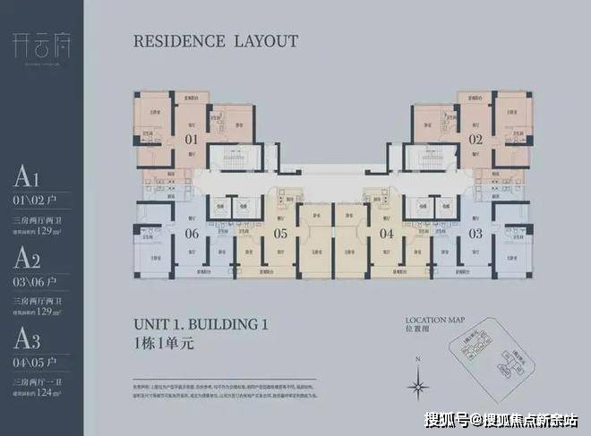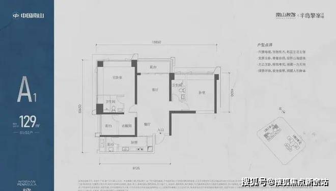 A1有两条腿,分别1-1栋01/02,主朝向是西北向,双龙抱珠格局。