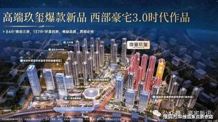 珈誉玖玺项目位于深圳宝安大道与凤塘大道交汇处,总建面约40.53万㎡,规划有10栋31-48层的高层、超高层住宅,总户数2479户。户型包括约75-97㎡的3房、约110-199㎡的4房等类型。