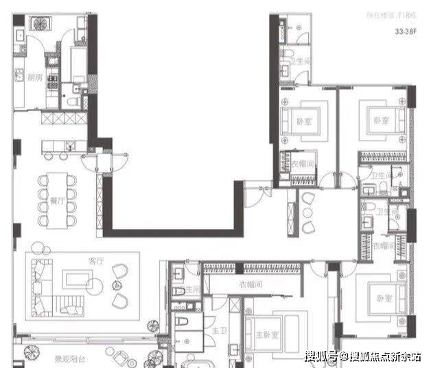 3. 主卧L形全景落地窗,270°最佳观海位。南向超大三厅一体,奢华大气。