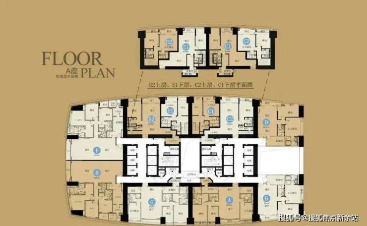 4+1房 364平米左右南向大复试 一楼客餐厅及客房,二楼三套房,大主卧,双入户门设计 46-58层