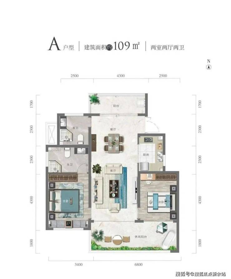 A 户型109㎡两室两厅两卫