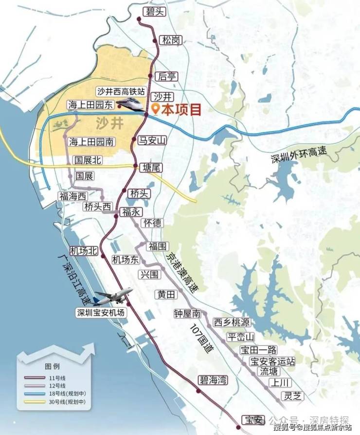 项目近地铁18号线(空港新城-龙岗平湖)和20号线(至沙井西站),连接核心区域,无缝换乘穗莞深城际。深中通道建成后,沙井将成为深莞中枢纽,锦和玉鸣府居民可快速通勤至大湾区城市,享受1小时经济圈便利。