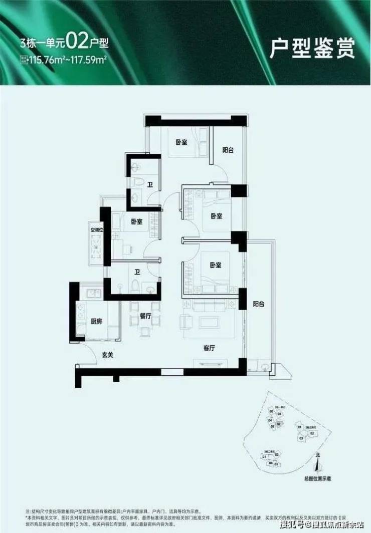汇城茗院的户型设计以实用性和舒适性为主。目前推出的户型主要为约116平方米的3+1户型,使用率较高。户型布局合理,空间利用率高,满足了不同家庭的需求。此外,项目还有更大面积的户型可供选择,如195平方米的4+1房,适合对居住空间有更高要求的家庭。户型设计上,注重采光和通风,餐客双厅贯通阳台,拥有良好的视野和景观。