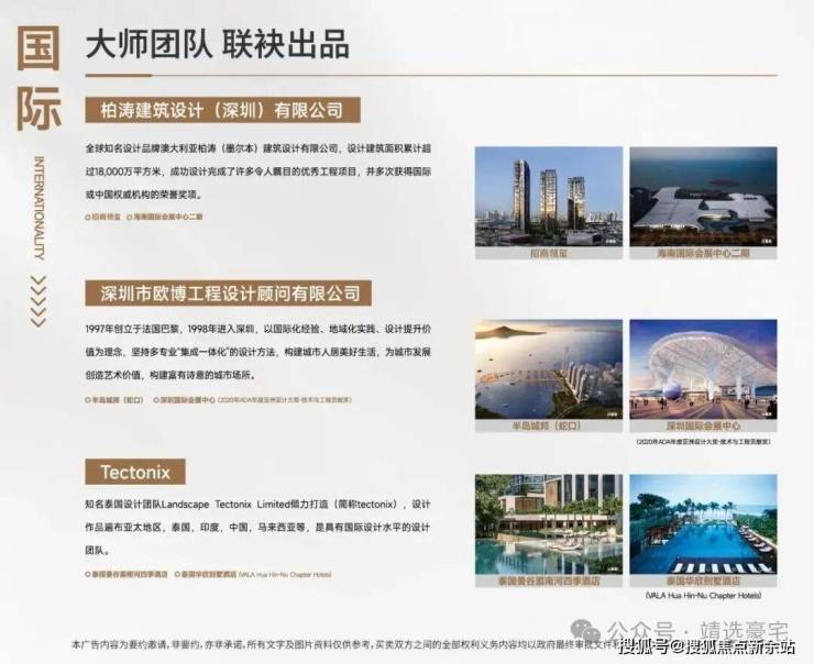 盛邀国际大师团队,澳大利亚柏涛、法国欧博、泰国tectonix联袂巨献;细节铸就品质生活样本。