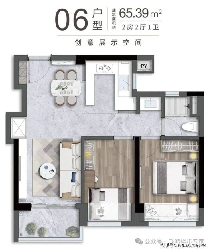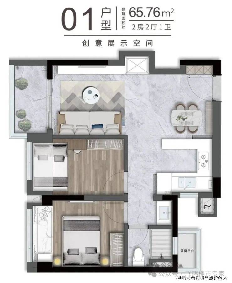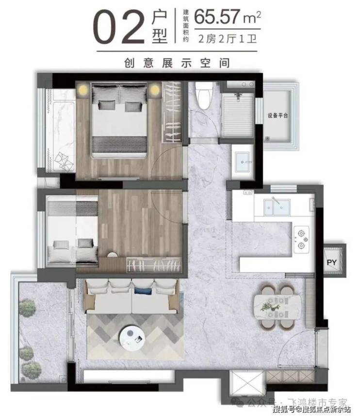 卓越珑秀公馆主推65平方米两房和81平方米三房两种户型,针对深圳年轻购房者的实际需求,在有限空间内做出了令人惊喜的设计。