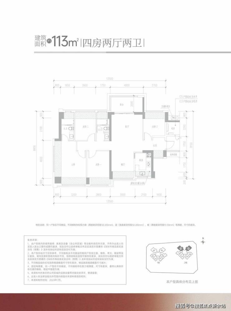 113㎡的4房2厅2卫,设计的竖厅南北通透格局,客厅4米开间,进门独立玄关,4个卧室分别做到了4米/2.8米/2.7米/2.6米的宽度,U型厨房,公卫三段式分离设计,得房率约:95%(包含赠送),阳台主朝西北或东北向,看科学公园景观。