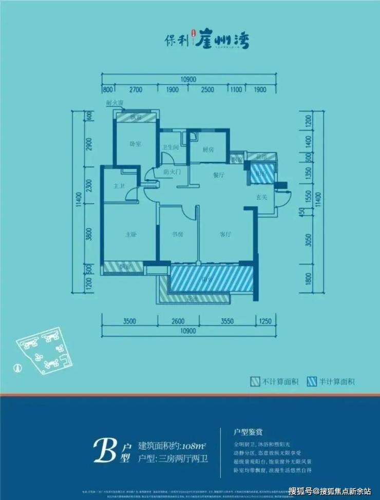 🏖B户型108㎡三房两厅两卫