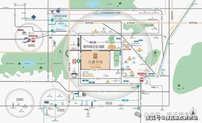 大靓华府紧邻清平高速入口(500米),自驾30分钟可达福田;现有地铁5号线“下水径站”距离约1.5公里,需公交接驳;1公里内有10个公交站,覆盖5条地铁线(含3、14、10号线换乘),地铁25号线(规划中)设“水径西站”距项目仅200米,建成后可串联坂田科技城,但建设周期未定。