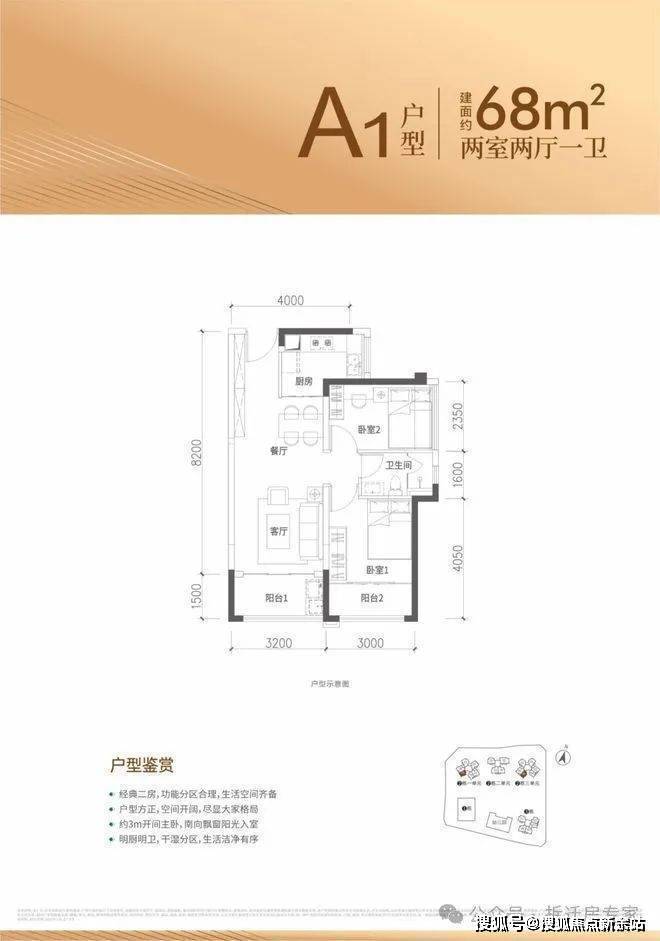 设计的是竖厅格局,客厅3.2米开间,进深8.2米,LDKB一体化设计,2个卧室分别做到了主卧11.55㎡/次卧7.74㎡(实测面积,去掉墙体飘窗),U型厨房,卫生间干湿分离,得房率约79%(不含赠送),西南朝向。
