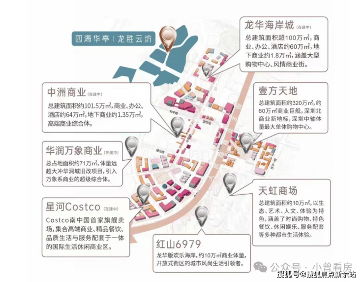周边深圳最大型商业壹方天地、华南地区Costco(在建中)、红山6979、天虹商场等