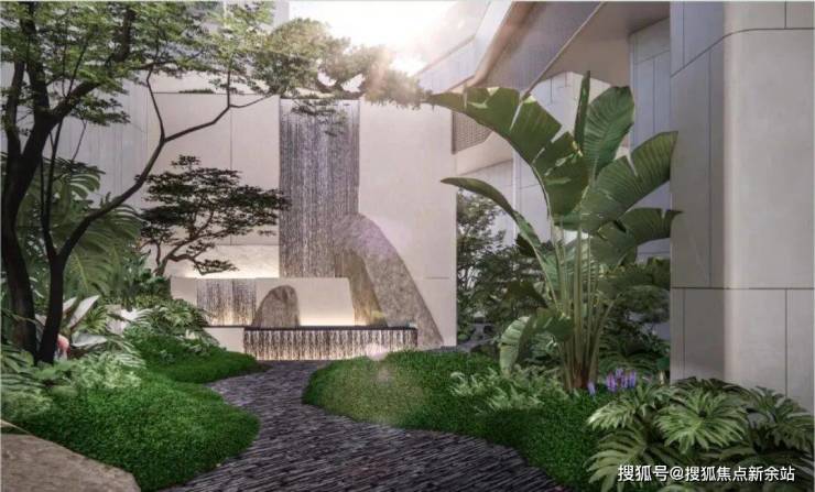 项目整体绿化率约40%,还打造了近9000㎡下沉式庭院,配置了多功能水院会所、室内景观泳池、全龄儿童生活场、林下休憩空间等。