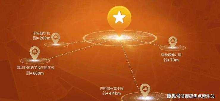 深圳外国语学校光明学校,直线距离约600米,由光明区委区政府重点打造的一所九年一贯制公办学校,委托深圳外国语学校全面管理,办学规模为54班,9月1日新校区落成已开学。