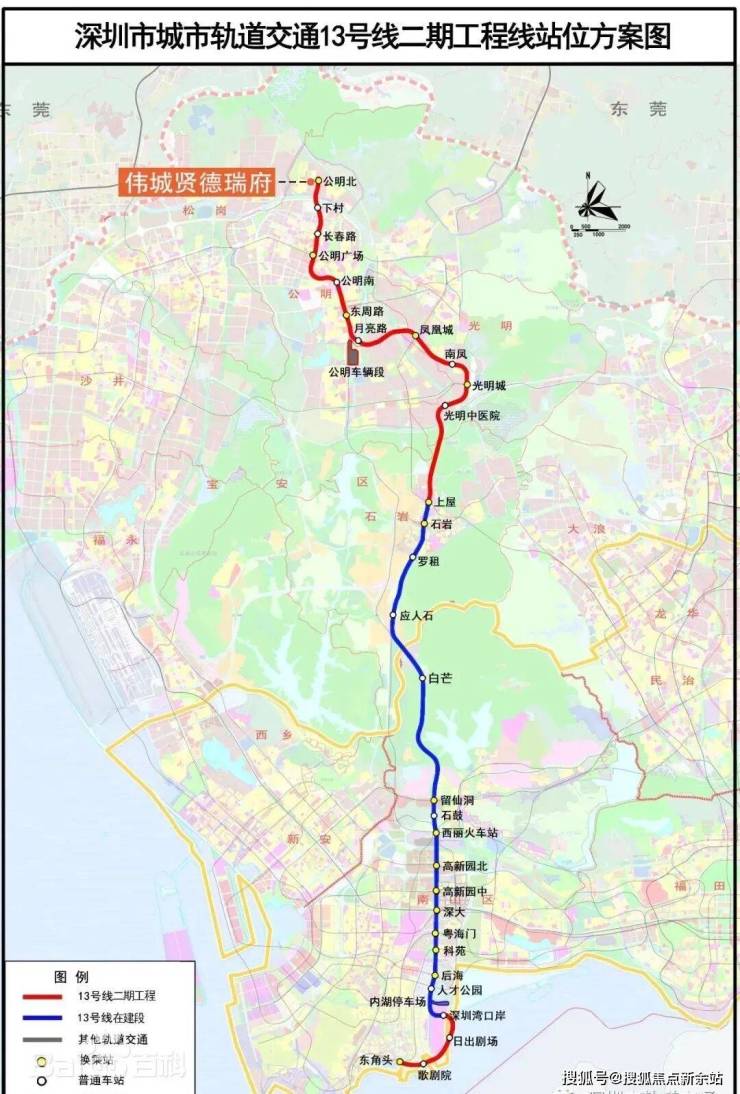 伟城贤德瑞府在光明区公明街道李松朗社区富力路与大园路交汇处,紧邻13号线二期公明北地铁站。13号线码农专线,适合南山刚需码农。项目配建有18班幼儿园一所,其离深圳外国语光明学校54班直线距离约600米也是一大亮点。