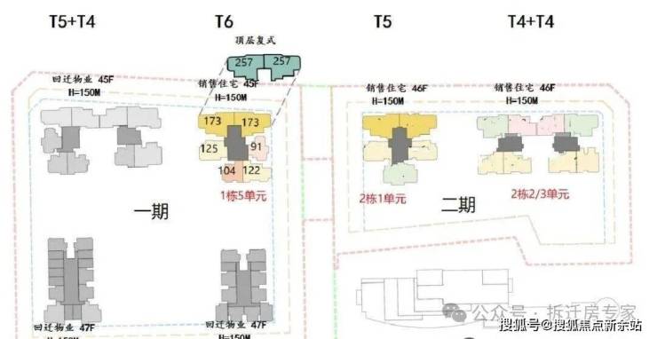 本次推售1栋五单元(45层),建面91-173㎡的3-4房。