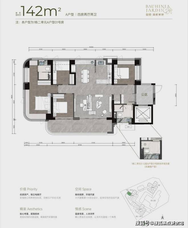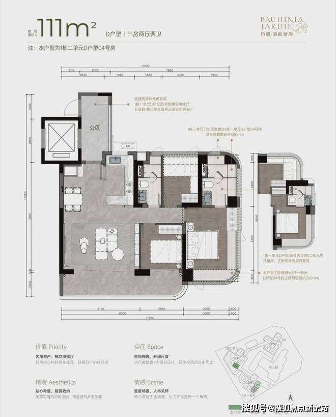 『湾啟紫荆府』项目为带精装修交付,居家必备的家具、家电、设施都是交付即拥有,营销中心设置有111㎡-121㎡-142㎡三个展示样板房,具体精装修交付标准及样板房创意展示空间可参考下图: