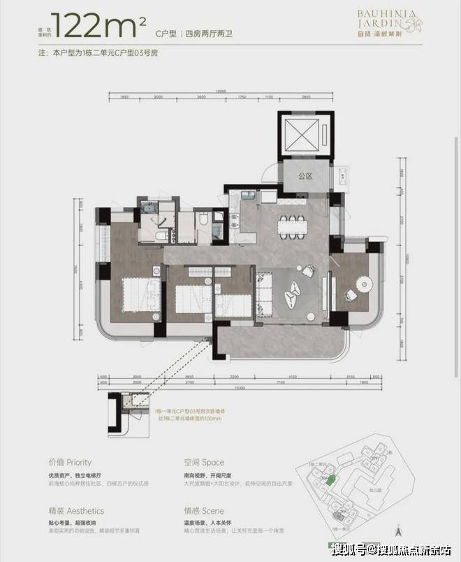 户型:新规设计、高使用率,规划主力为3-4房产品。