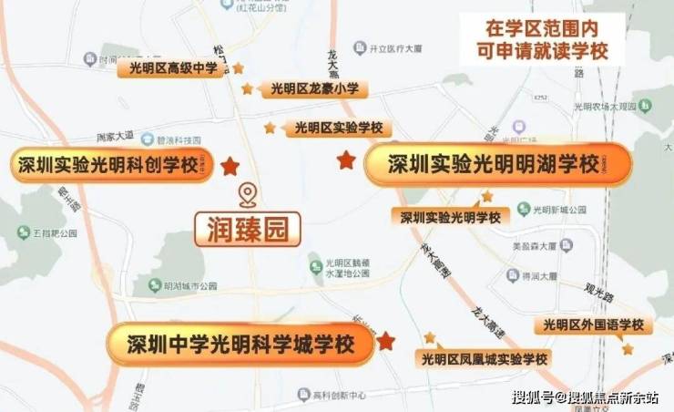 除了双深实验,3 公里范围内还涵盖深圳中学光明科学城学校、深圳市光明实验学校等多所名校,形成以“双深实验 + 深中+光明实验” 为核心的超豪华名校矩阵。