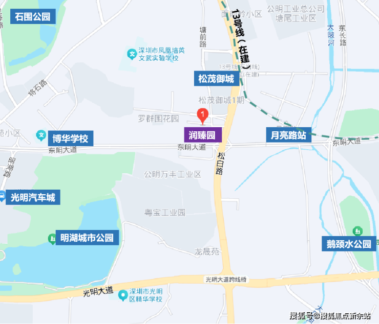 润宏城-润臻园位于光明凤凰城板块,临近13号线(在建)月亮路站,属于凤凰城边缘区域。