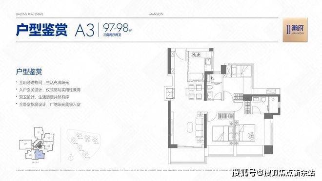 【建筑面积96-98㎡3房2卫】