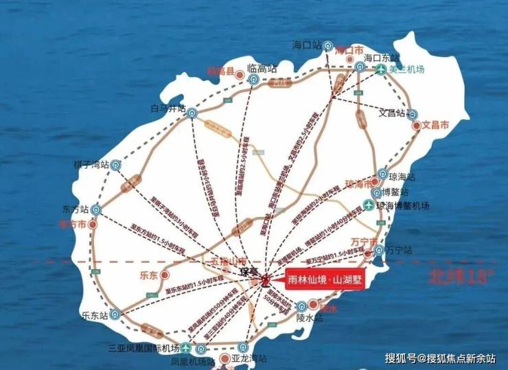项目地处保亭,大三亚1小时生活经济圈内;距凤凰机场直线距离约45公里,三亚高铁站直线距离约为40公里,陵水高铁站直线距离约为30公里,50分钟左右可到达;30分钟车程可到达国家海岸《海棠湾旅游度假区》,《解放军301医院》,50分钟左右到达三亚市行政中心区;20分钟车程可到达保亭著名《七仙岭温泉国家森林公园》、《呀诺达雨林文化旅游区》;40分钟到达《海南槟榔谷黎苗文化旅游区》;50分钟可到三亚《天涯海角游览区》、《南山文化旅游区》及《蜈支洲岛旅游区》;30分钟可达陵水的《黎安国际教育创新试验区》自贸港建设必不可少的《海南大学城》;