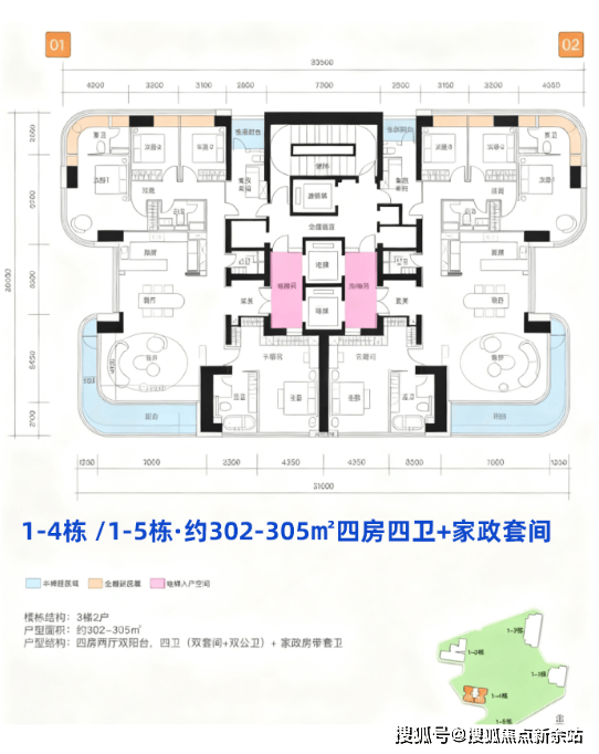 D栋 305㎡ 层高3.5 四房,80余套