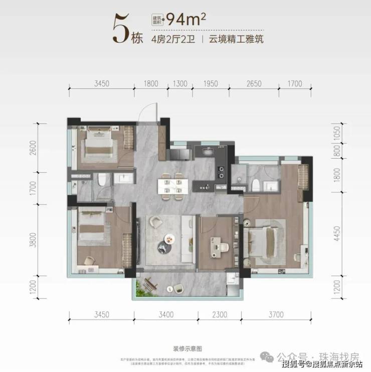 无界大横厅 四房(远超常规90㎡户型)