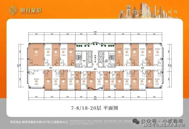 ◆ 标准柱网布局,多套可灵活打通,边套双采光,大户型灵活度高