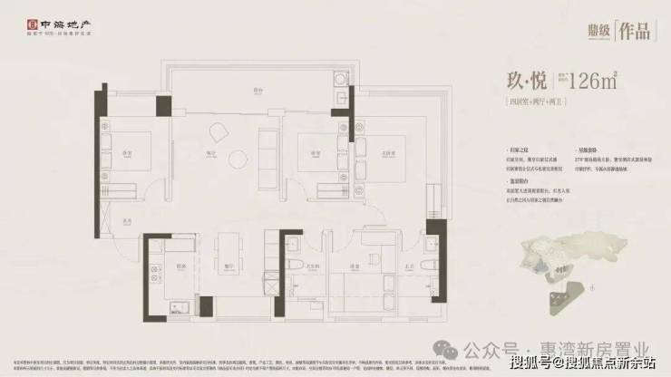 住宅共有5栋楼,面积段是126-139-143-197-206-282㎡四房户型。其中1栋和2栋为一层2梯2户大平层,3A栋、3B栋和4栋为一层3梯4户改善型住宅。