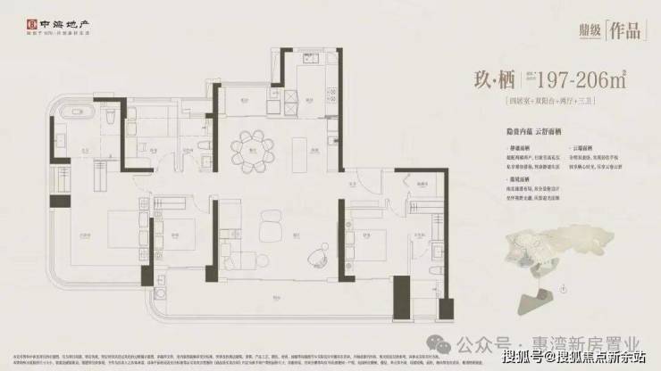 项目首推1栋和2栋的197-206-282㎡四房大平层,包括: