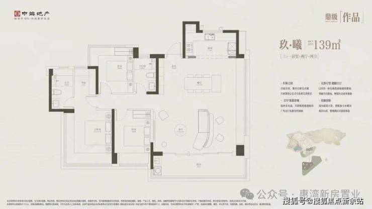 139㎡ 3+1房二卫大方厅;