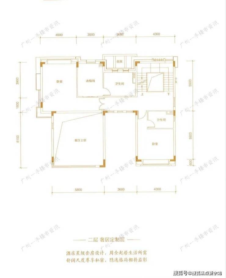 别墅二层只设计了两个超大套房(其中一个有配备衣帽间),二层套房超大的空间设计可以供业主小孩使用。