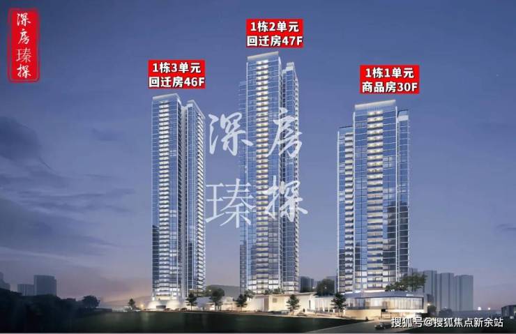 玖珑瑧境(1期),总占地面积约1.41万㎡,总建筑面积约11.03万㎡,其中计容建筑面积约8.15万㎡,容积率5.2,绿化率40.03%,共由3栋住宅组成,其中1栋1单元商品房30F,1栋2单元回迁房47F,1栋3单元回迁房46F。