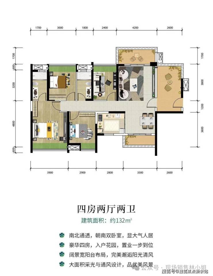 [户型]:2梯4户,3房/4房+入户花园,全部双阳台,房间全部有飘窗赠送