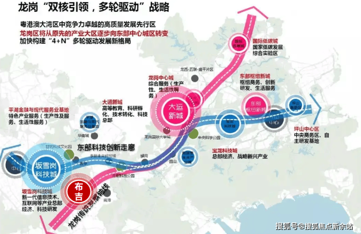 位踞东进战略与布吉超级城市中心,湾区科技创新聚集地,坐拥坂雪岗科技城这一核心科技创新平台,手握大运新城、国际低碳城等多个创新节点,打造信息数字产业与城市栖居功能融合的活力新城。
