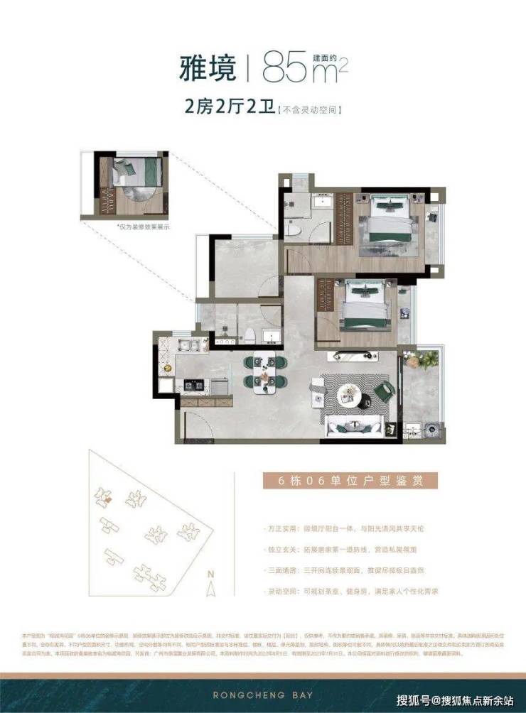 另外,85㎡的瞰江小三房也有在售,单价约 3.8 万 /㎡,总价 330 万左右,三开间带景观阳台,入门门槛不高。