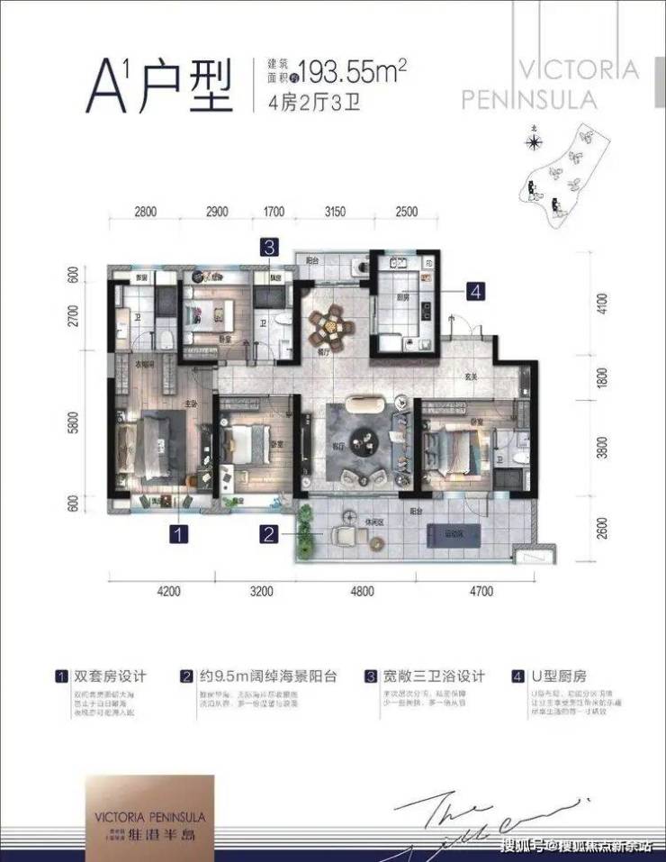 维港半岛整体设计风格为简洁、大气的现代主义滨海风格,干净简洁建筑语言最大化突出自然环境,建筑与自然关系是互融互透而非对立对抗。呈现别具一格的瞰海景观优势,产品结合山势台地错台布置,最大限度的为每一栋产品提供更多的瞰海景观。