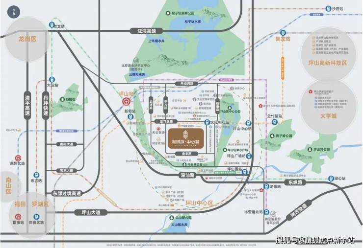 坪山区位:中心区以“深圳都市圈东部创新中心与商务中心”高定位,是区域高层次人才理想宜居宜业之城。