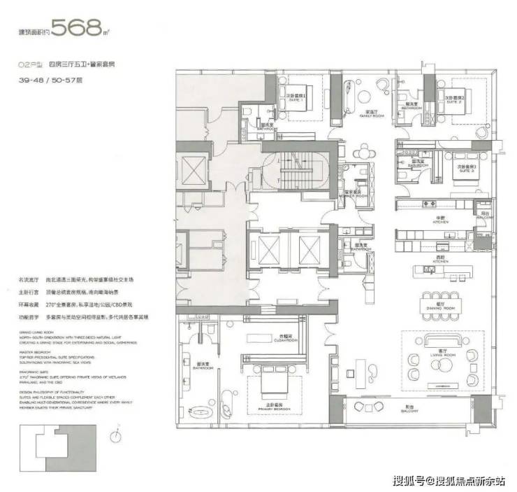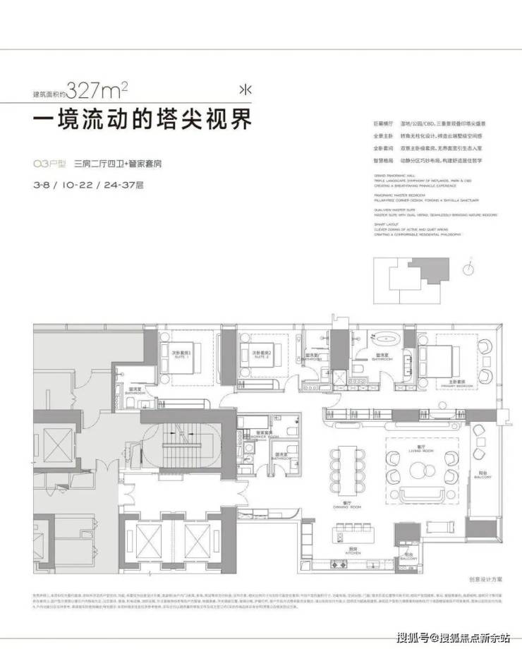 2. 产品与社区配置高端:主力为303 - 570㎡大平层及多套独栋、合院别墅,3.6 - 3.9米层高搭配超大阳台,还通燃气。由全球顶尖团队设计,全玻璃幕墙外观极具现代感。容积率仅3.0,社区有艺术园林、空中泳池等,低密又舒适。