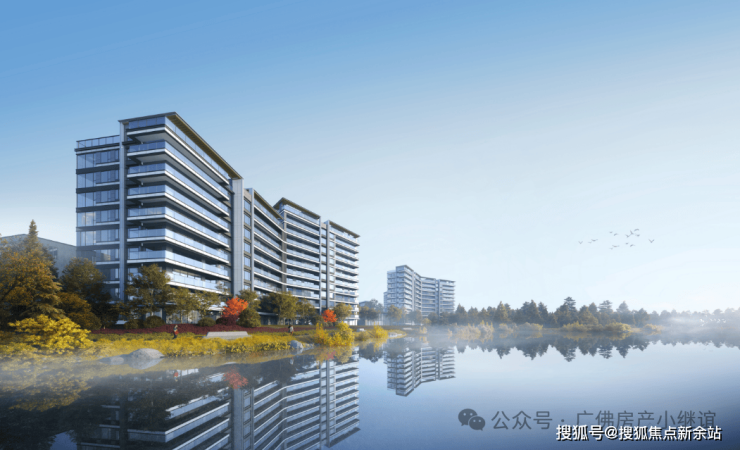 公建化立面:采用大面积极窄边框玻璃设计,窗墙比达0.45,室内与湖景相互渗透,把湖的光影印射在生活的空间里