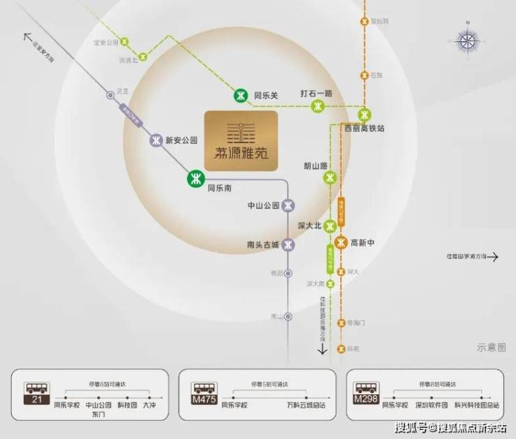 15号线(建设中)同乐关站(直线约1.5km),2站到西丽高铁站,贯穿前海、后海、南山、宝安等重要片区,环经济发展核心区域。